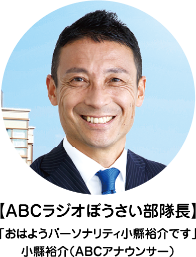 阪神・淡路大震災から30年。ABCラジオのリスナー・スポンサー・出演者やスタッフが一体となり、近い将来発生すると言われる南海トラフ巨大地震や、台風などの自然災害による脅威に立ち向かうため、「ABCラジオ ぼうさい部」を立ち上げました。ABCラジオは"もしも"の時も、声であなたと大切な人を守ります。
