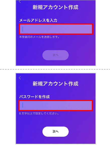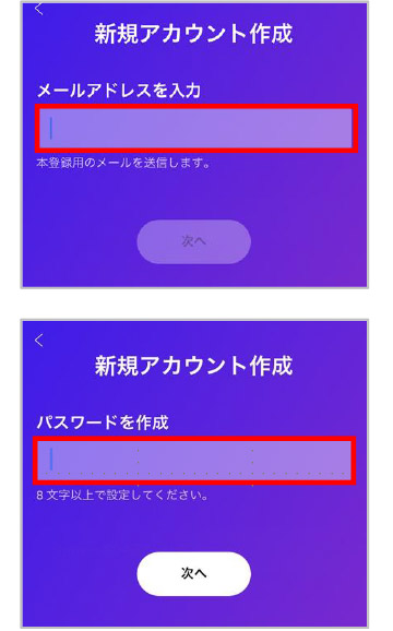 ⑥メールアドレス・パスワードを入力する