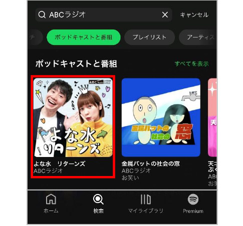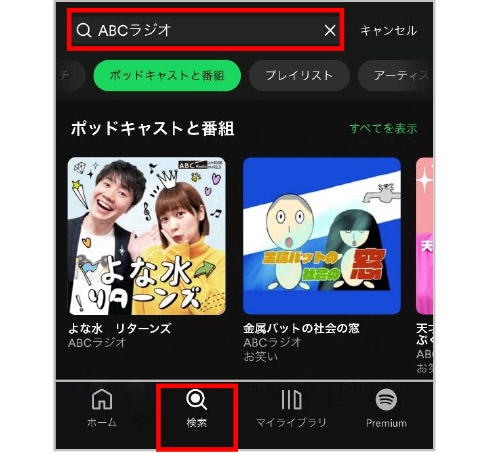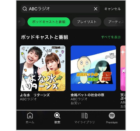 ⑩Spotifyで「ABCラジオ」を検索する