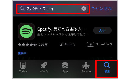 ②「スポティファイ」で検索