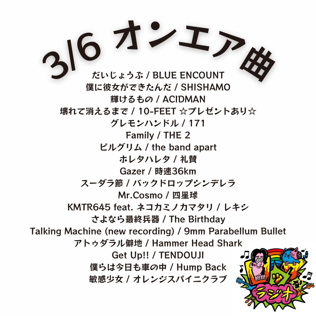 番組TOPオンエア曲オンエア曲2026年2026.03.273/27 オンエア曲2026.03.203/20 オンエア曲2026.03.133/13 オンエア曲2026.03.063/6 オンエア曲2026.02.272/27 オンエア曲2026.02.202/20 オンエア曲2026.02.132/13 オンエア曲2026.02.062/6 オンエア曲2026.01.301/30 オンエア曲2026.01.231/23 オンエア曲もっと見る